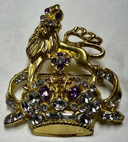 Tbn Lion Of Saint Mark Prayer Brooch Purple And Clear Stones Ebay